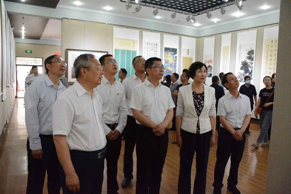 新天水讯【记者 赵蔓】6月28日,市直机关庆祝建党100周年书画展在市文化馆开展。市人大常委会副主任李焕珍、副市长彭剑鸣、市政协副主席屈光平出席活动。