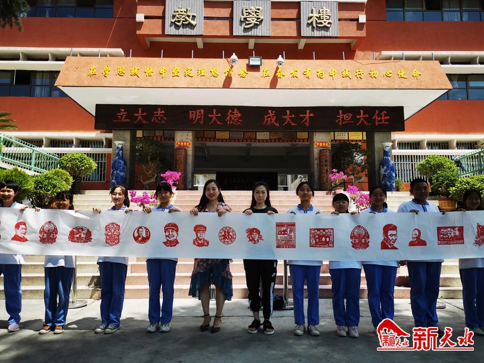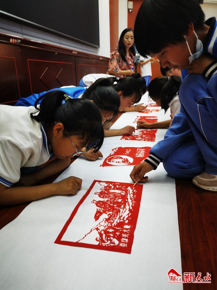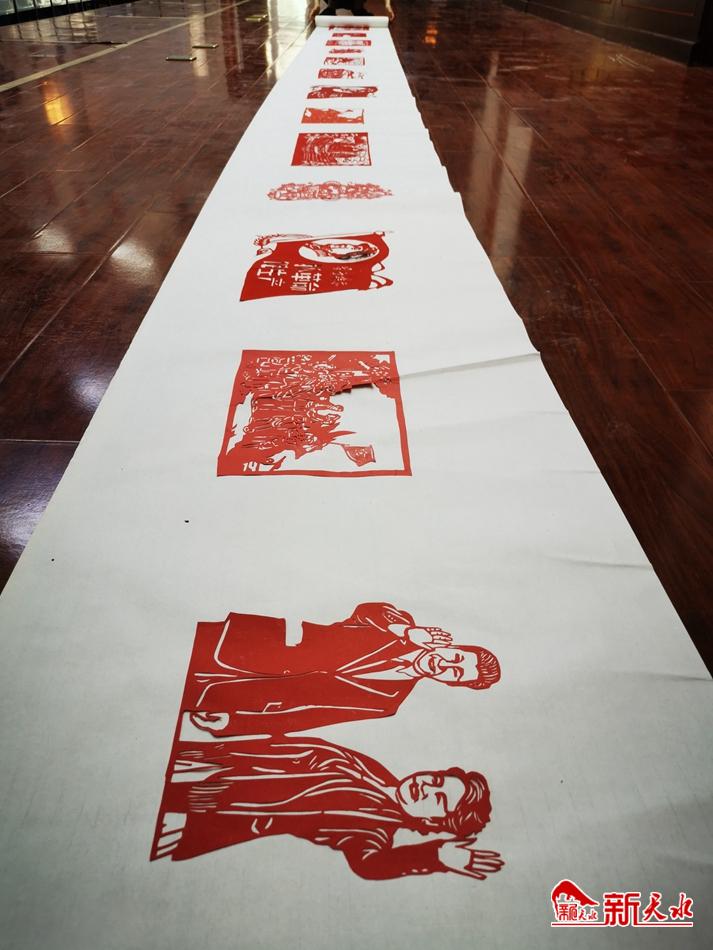 6月29日,天水市三中初中部师生展示60米剪纸长卷《百年辉煌》。近日,在2名美术老师的带领下,市三中400余名学生选取一些历史人物、场景等,用巧手剪刻出来,再贴在长卷上,创作出长约60米、共200余幅剪纸作品组合成的建党百年主题剪纸长卷《百年辉煌》,献礼建党100周年。 通讯员 张菁 摄