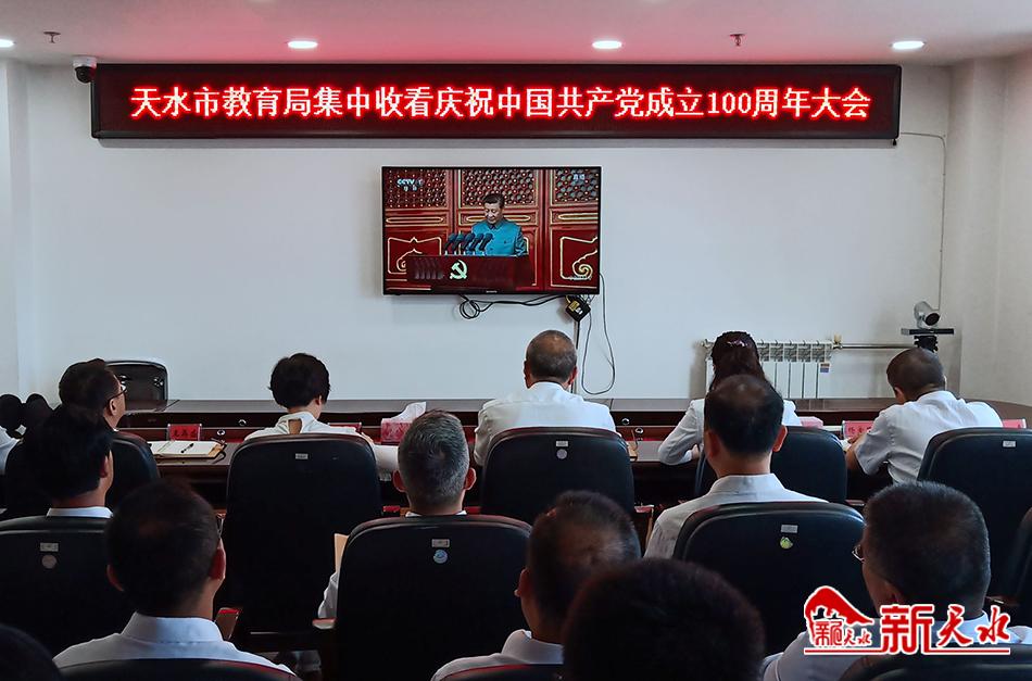 新天水讯【记者张文都】7月1日,天水市教育局组织干部职工收听收看了庆祝中国共产党成立100周年大会直播盛况,聆听习近平总书记的重要讲话,热烈祝贺党的生日。