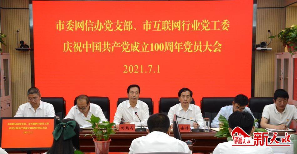 新天水讯 7月1日,在全党全国隆重庆祝中国共产党百年华诞之际,市委网信办党支部、市互联网行业党工委联合组织召开庆祝中国共产党成立100周年党员大会,集中收听收看庆祝中国共产党成立100周年大会实况直播,对“两优一先”进行表彰奖励。市委宣传部副部长、市委网信办主任、市互联网行业党工委书记刘越高主持会议并讲话。