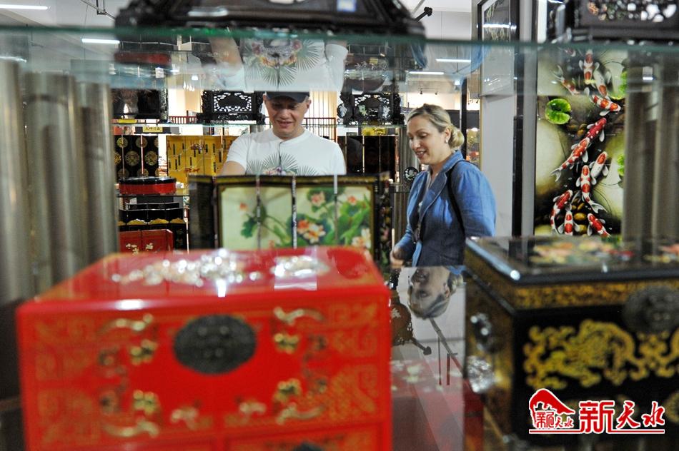 走进展厅,各种造型精致、图案古朴的雕漆制品呈现眼前,首饰盒、屏风、花瓶等,琳琅满目。