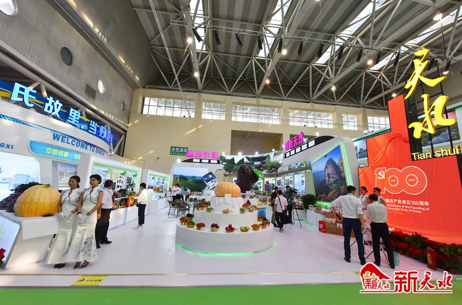 本届兰洽会上,天水展馆划分在甘肃国际会展中心特色优势产业展区,面积198㎡,展区采用声、光、电、冰屏及LED电视墙等有效载体进行特装搭建,以直观新颖、简约大方、杜绝浪费为理念,突出产业、企业、产品和洽谈功能。布展方面突出展示天水市现代工业、农业科技、文化旅游方面产品和项目合作、贸易洽谈与产品推广功能。参展企业81家,展区主要产品包括:电子科技、装备制造、航天育种蔬菜、瓜果、浓缩苹果汁、绿色有机产品、沙棘汁饮料制品、蜂蜜、杂粮、花椒、辣椒、清真食品、雕漆、陶艺、棉麻制品、鸳鸯玉、竹编等系列产品80多个大类、600多个品种。