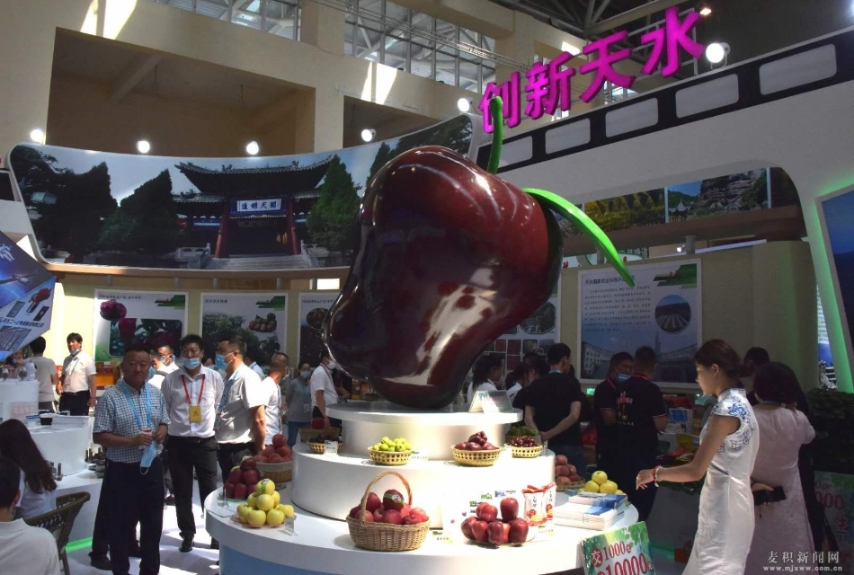 甘肃国际会展中心天水馆麦积展品区展品丰富、富有地方特色,共有天水花牛苹果(集团)有限公司、天水长城果汁集团有限公司、甘肃孟菇食品有限公司、天水汉唐麦积山艺术陶瓷有限公司等20家企业97个品种343件产品,展品主要有花牛苹果、孟姑酸菜、陇上花牛苹果汁、汉唐陶艺、黄河雕漆工艺品、老家八大碗、三阳手工挂面、元龙花椒以及中药材、土蜂蜜、淀粉、核桃、松子、木耳、香醋等。