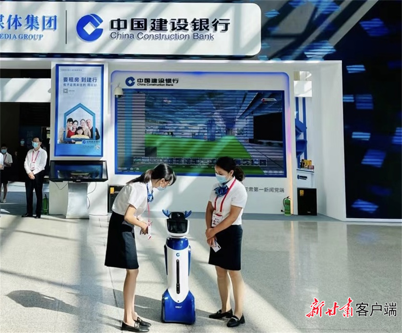 这是建设银行甘肃省分行的智慧“客服”,呆萌可爱的外观,幽默风趣的对话和它身后的展馆完美融合在一起,吸引了许多人关注。
