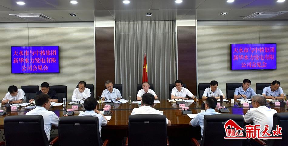 新天水讯【记者杨璟 实习生 李榕】7月12日,天水市委书记王锐会见中核集团新华水力发电有限公司党委书记、董事长、总经理张焰一行,双方就新能源开发合作进行了洽谈。