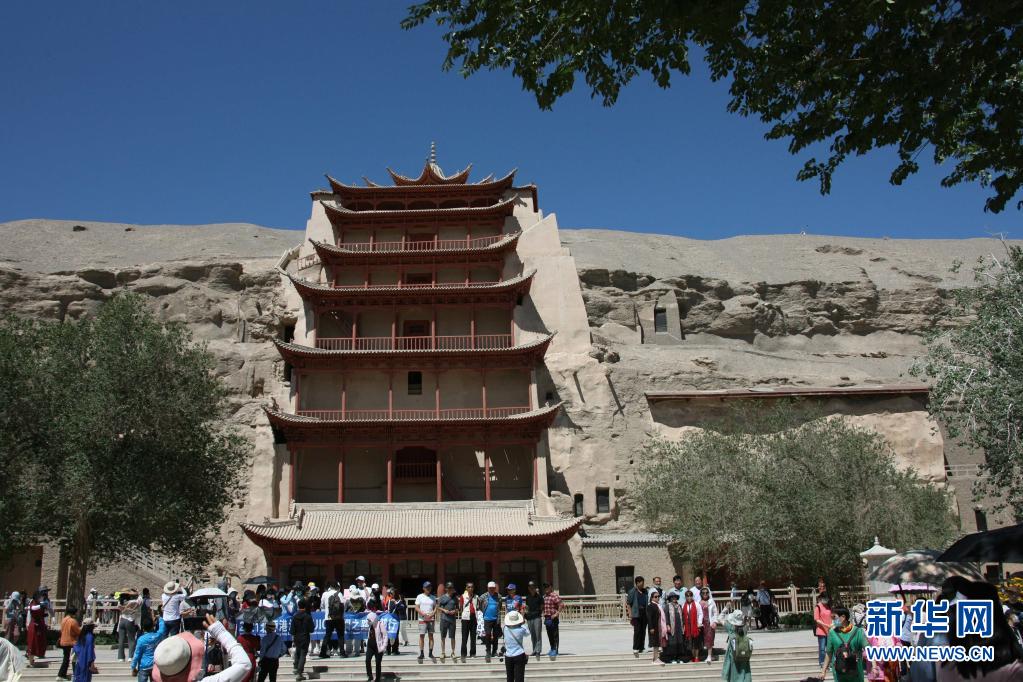 游客在敦煌莫高窟游览(7月6日摄)。新华社记者 刘诗平 摄
