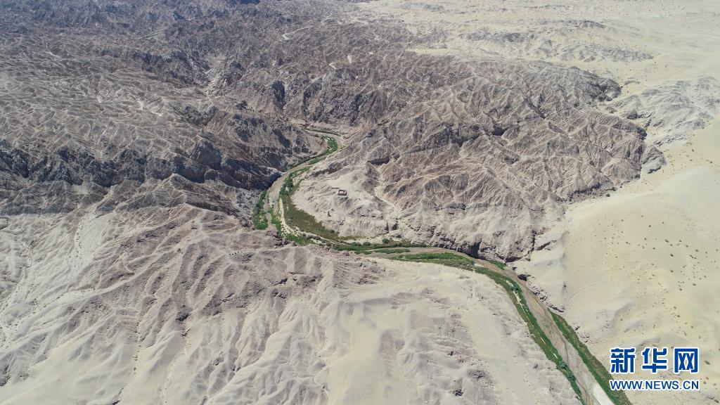 这是敦煌莫高窟北区及河边防洪堤(7月6日摄)。新华社记者 刘诗平 摄