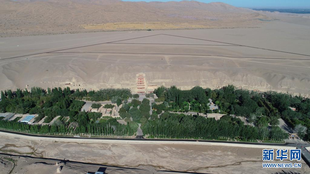 这是敦煌莫高窟全景(7月6日摄,无人机照片)。新华社记者 刘诗平 摄