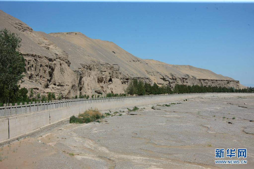 酒泉市党河流域水资源管理局副局长邓巍说,为保护莫高窟历史文物古迹,酒泉市于1983年沿莫高窟保护区河道修建了防洪堤。由于防洪标准较低,2003年重新修建了该段堤防工程,设防标准为百年一遇。