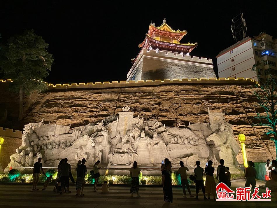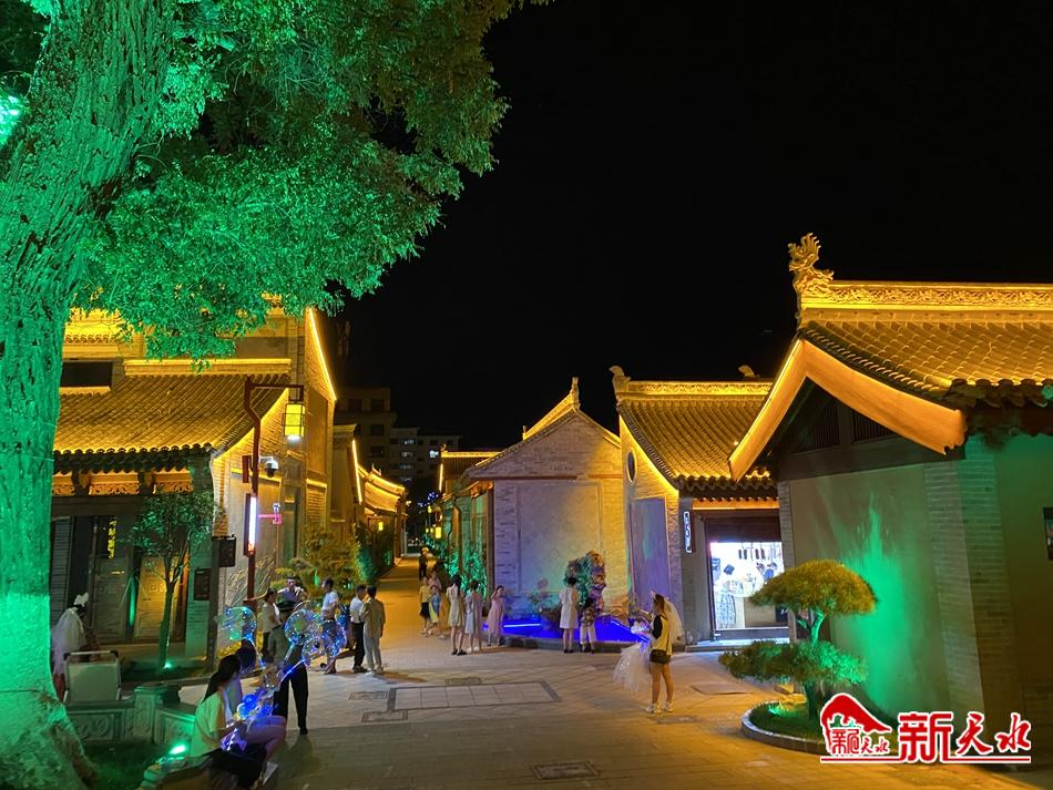 正值盛夏,天气炎热,许多市民晚上便会去天水古城纳凉,7月13日晚,记者来到天水古城,没有了白天的阳光明媚,古城夜景如画,灯火璀璨、美轮美奂,仿若一位犹抱琵琶半遮面的姑娘,那么迷人。
