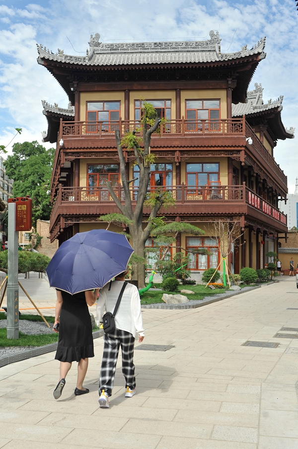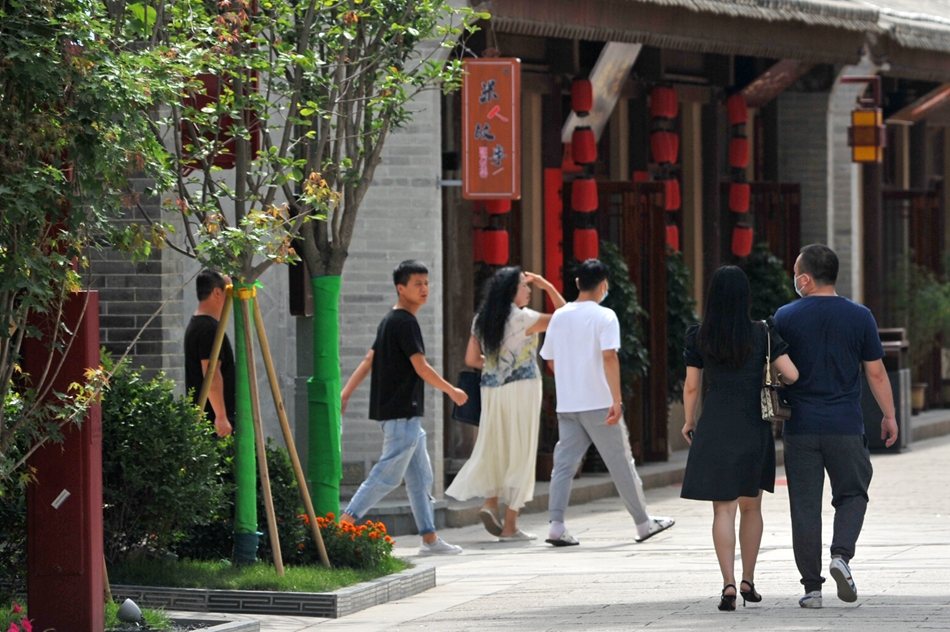 巷道里沿墙开放的凌霄花,是情侣拍婚纱照的背景;小院里屋檐下的一张方桌、一把藤椅,让读书人寻到一缕清凉;古装店里,身装汉服的姑娘摇一把苏绣的扇子,看窗外的艳阳高照;秦州八景图案的浮雕画廊前,拍照的市民络绎不绝;站在城墙上俯瞰天水古城西关片区,古民居星罗棋布,古街古巷阡陌纵横、古树苍翠。