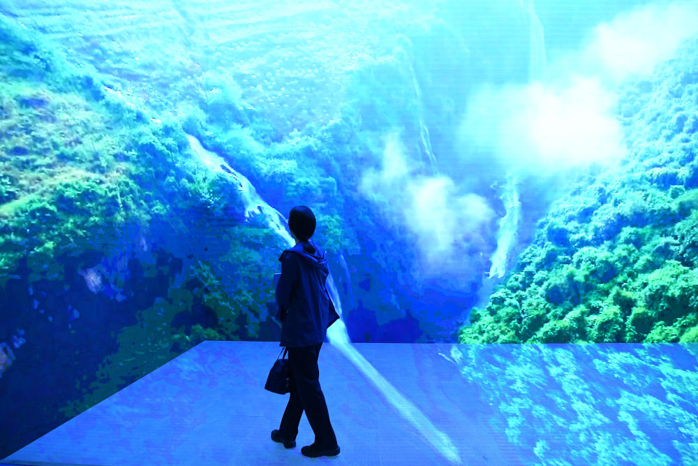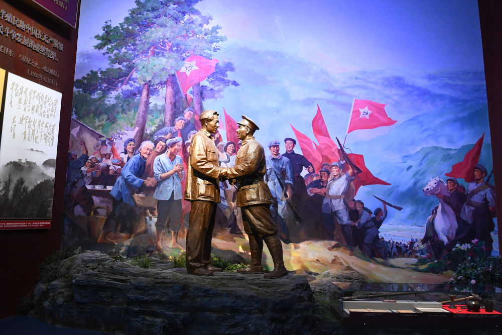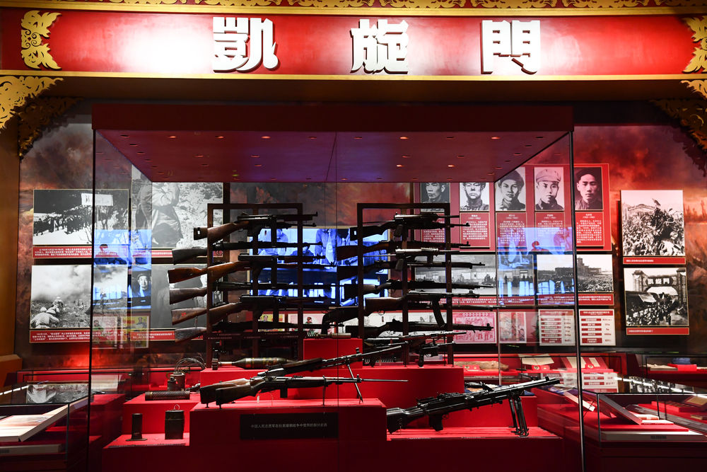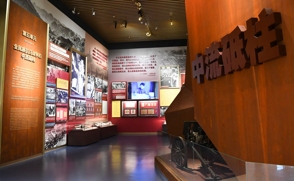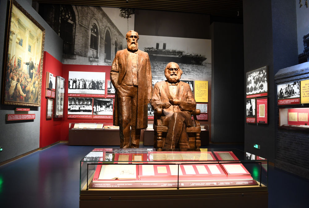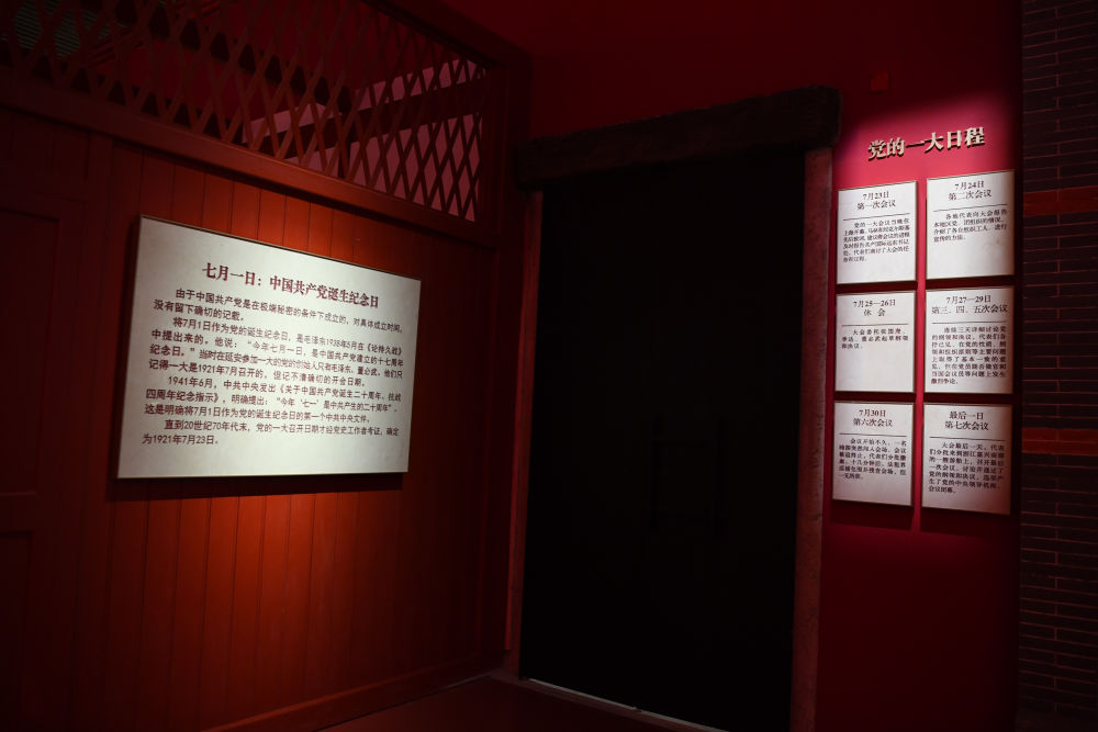 ↑在党史展览馆红色大厅,共产党员面向鲜红的中国共产党党旗,重温入党誓词。