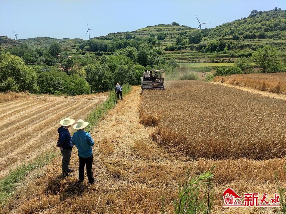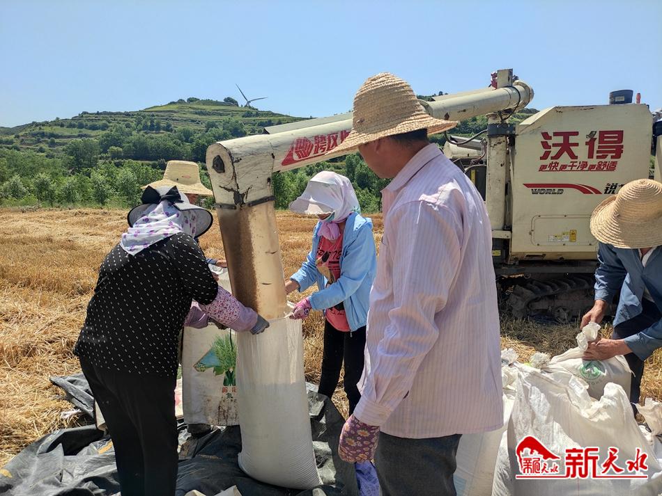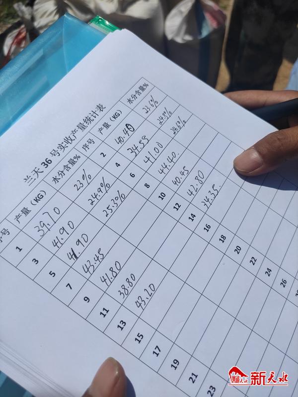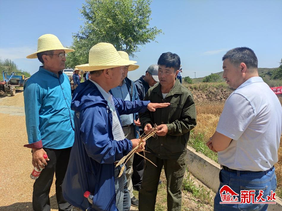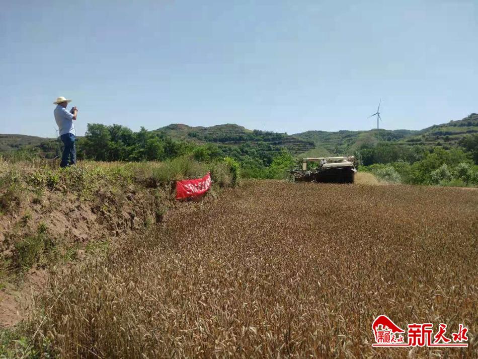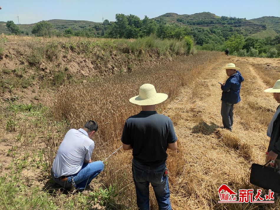 烈日下,专家组成员仔细察看兰天36号生长情况,测株高、量面积、记数据……机声隆隆中收割机开进示范田,在李沟村村民帮助下,收获了28袋颗粒饱满的小麦。