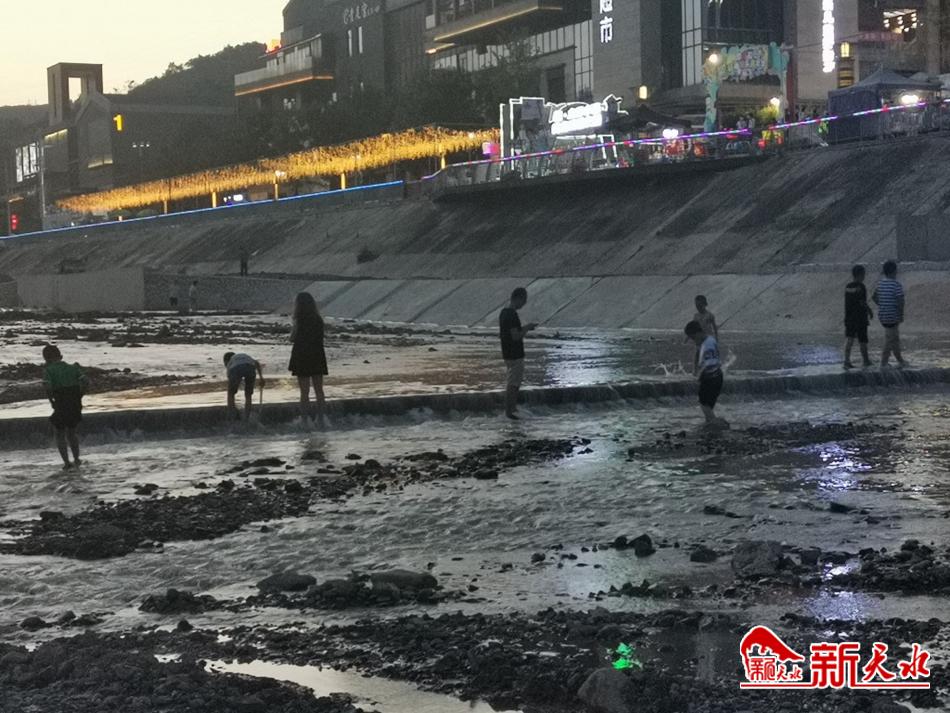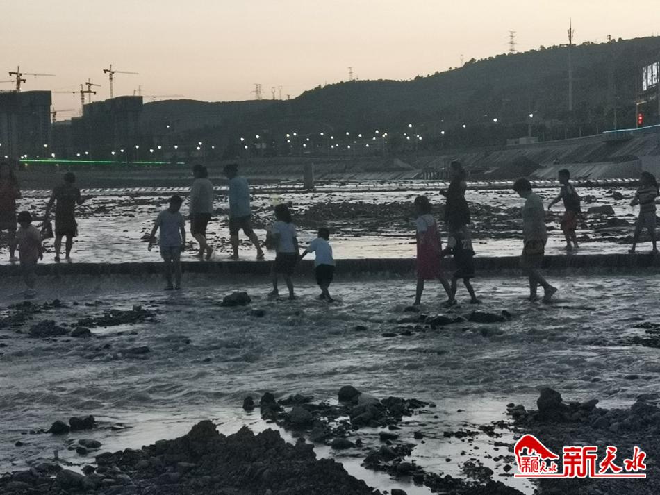 7月18日傍晚,在秦州区藉河佳·水岸小镇附近,部分市民来到河边戏水乘凉,玩得不亦乐乎。在此,还是要提醒广大市民,河道底部稍不留神就会发生危险,为了您和家人的安全,游玩时切莫松了“安全弦”,以避免危险发生。(夏雨 摄)