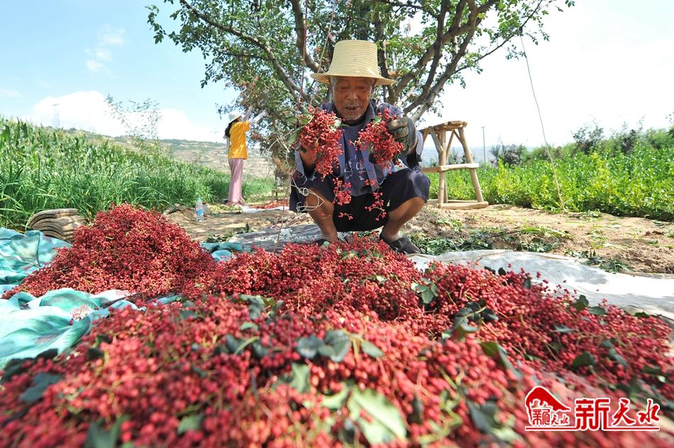 甘谷县新兴镇苟家村村民在晾晒刚采摘的花椒