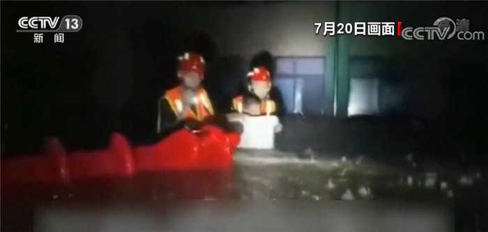 7月21日凌晨,河南郑州消防经开区大队崇光路消防站携带救生装备及橡皮艇对蝶湖区域附近的被困人员进行搜救,共搜救出7人。
