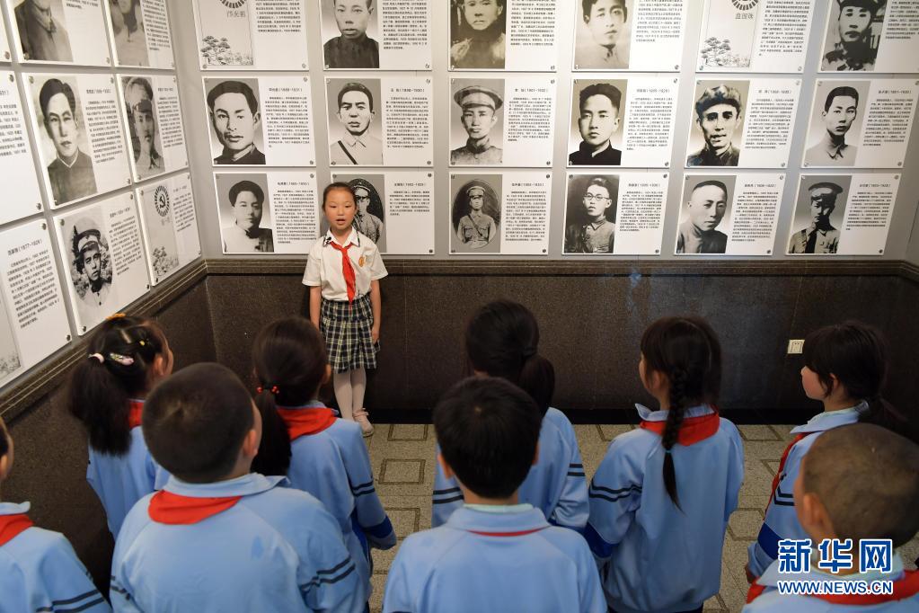 在井冈山革命烈士陵园,“小红军宣讲团”的成员周煜菡给前来参观研学的学生们进行义务讲解(5月12日摄)。新华社记者 彭昭之摄