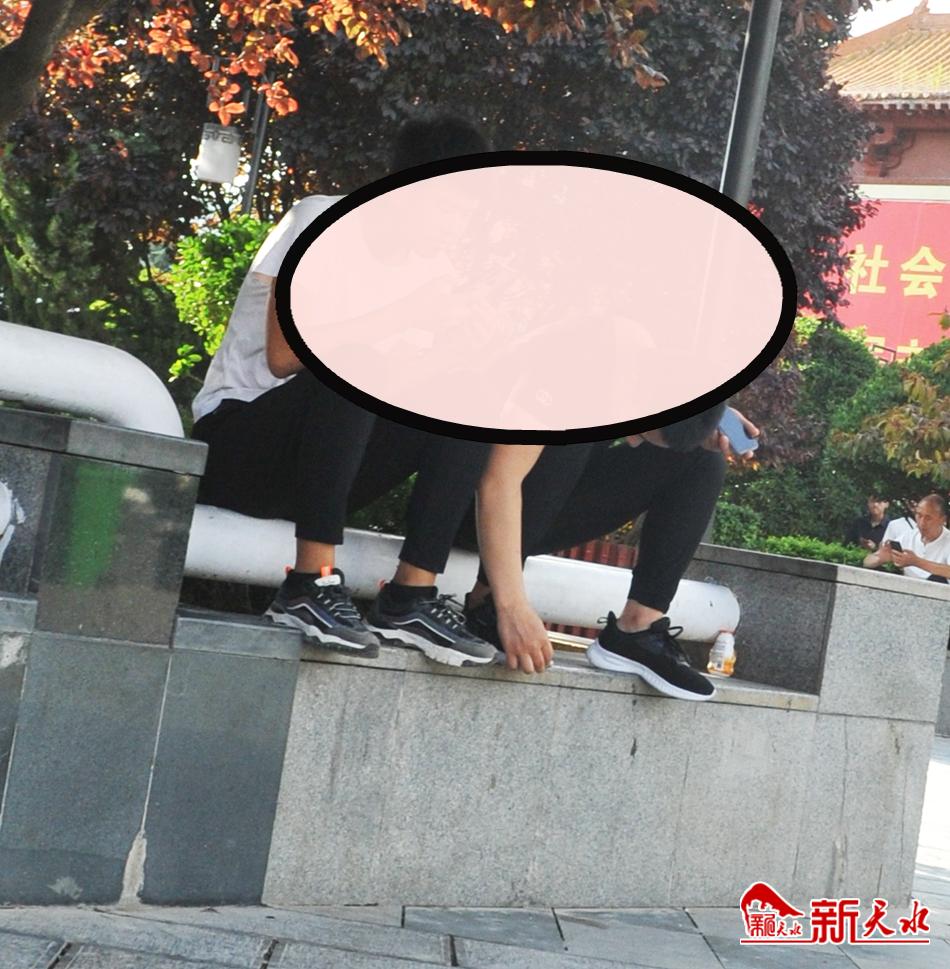 近日,秦州区中华西路步行街的花坛边,有些年轻人攀上花坛独坐高处。坐地高看起来是比别人显赫了一点,殊不知这样的不文明行为反而会使自己的形象大打折扣,并会给身边的孩子匜带来不好的影响。(新天水记者 杨晓斌摄)
