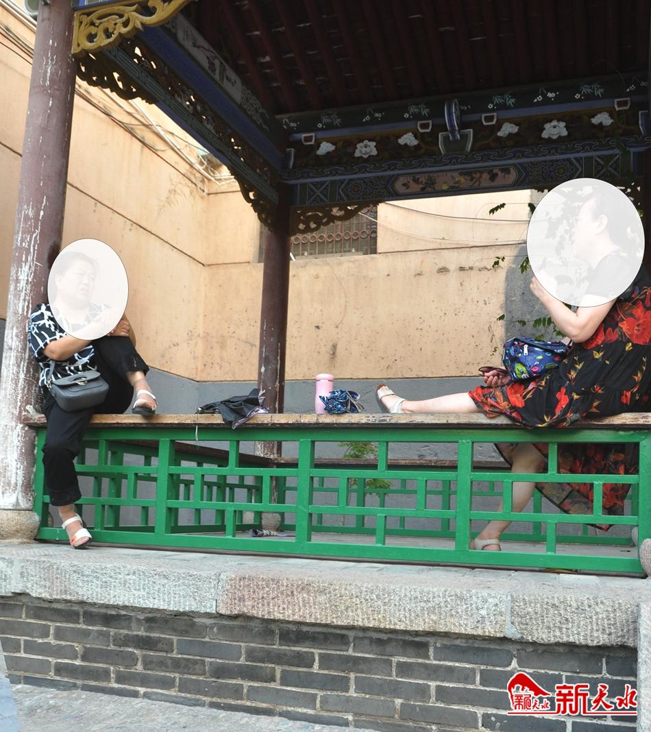 近日,秦州文庙的石碑长廊内,两个妇女旁若无人地坐在护栏上还把脚也踩在其上拉家常闲聊。石碑长廊是一个展示文物古迹的地方,不是拉家常的地方,即便拉家常也不应该这么坐着拉。尤其这样的坐姿更是有碍旅游景点的形象。(新天水记者杨晓斌 摄)