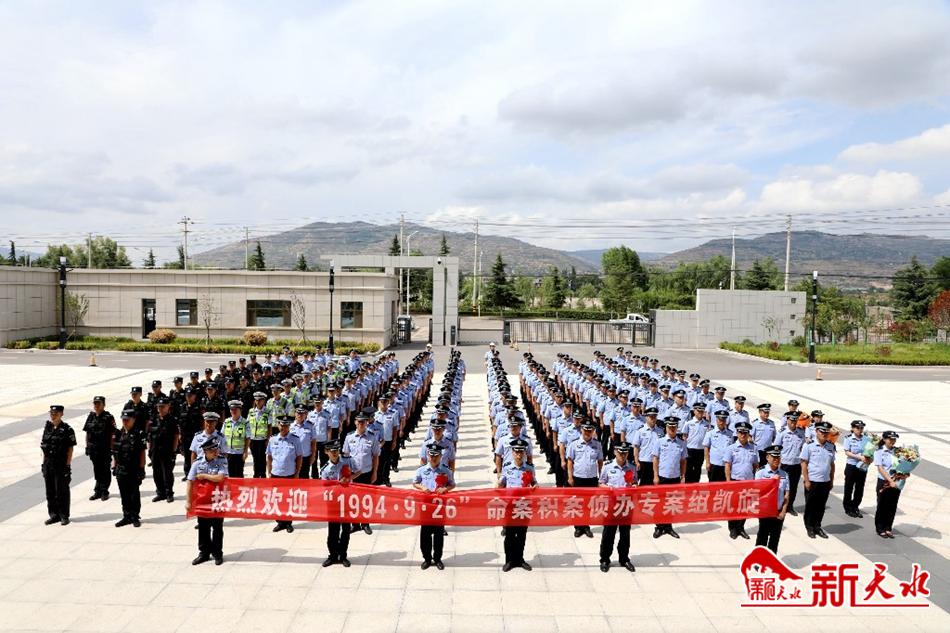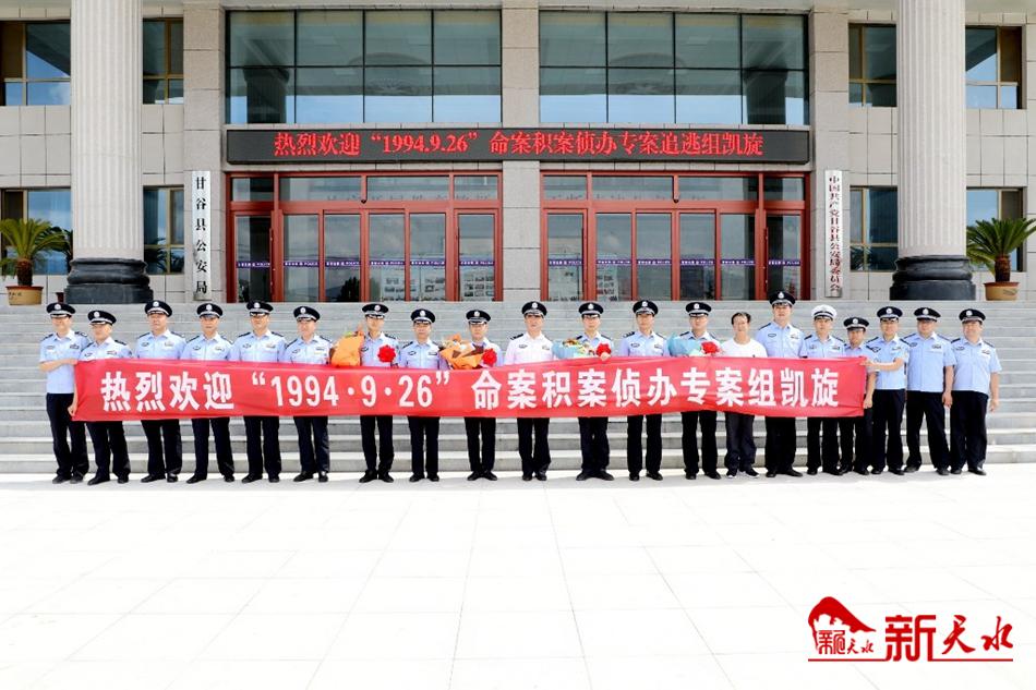 新天水讯【记者 蔚军平】7月23日下午,甘谷县公安局举行仪式,迎接“1994·9·26”命案积案侦办专案组凯旋。