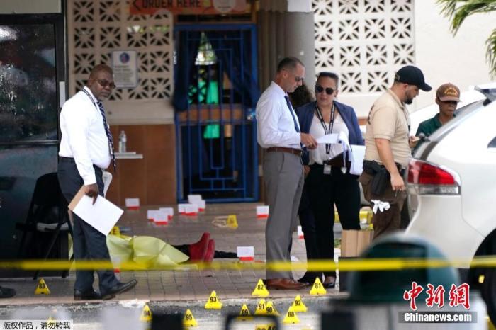 当地时间5月30日凌晨,位于美国佛罗里达州东南部的迈阿密戴德县发生大规模枪击事件,造成2人死亡、20多人受伤。图为枪击案现场。