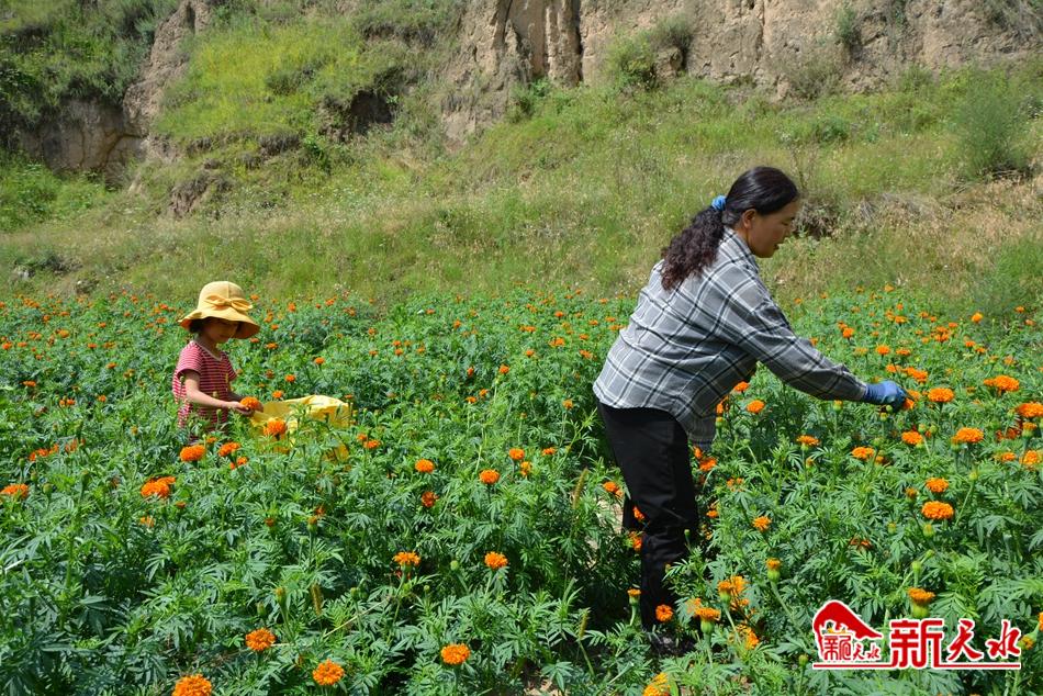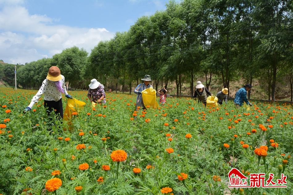 “万寿菊是菊科一年生草本植物,花朵含有丰富的叶黄素,可广泛用于饲料添加剂和食品添加剂,附加值较高。”正在指挥工人采摘的万寿菊基地负责人杨永红说,万寿菊的经济价值主要在花朵,由于万寿菊有花期长、产量高、运输方便、不易变质等特性,他们便选择了在当地种植万寿菊。基地所产菊花主要发往庆阳,用来提炼叶黄素,亩产量在3—4吨,每吨收购价1000元左右,每亩地纯收入达2000元以上。