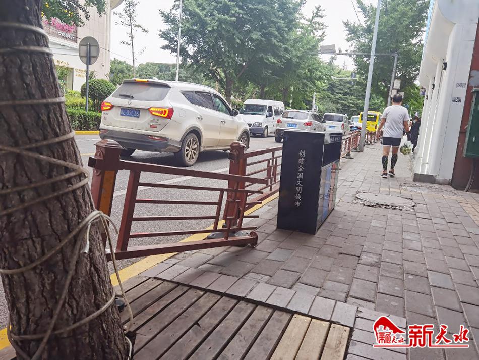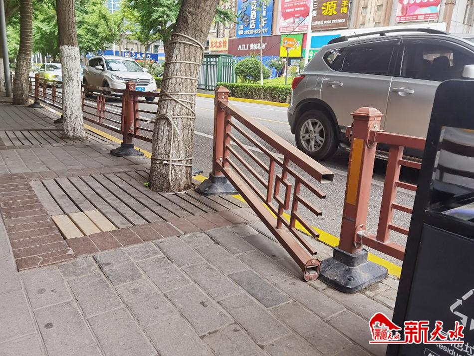 7月27日,在秦州区青年南路,一节隔离栏断裂,影响市容市貌。(冰帆 摄)