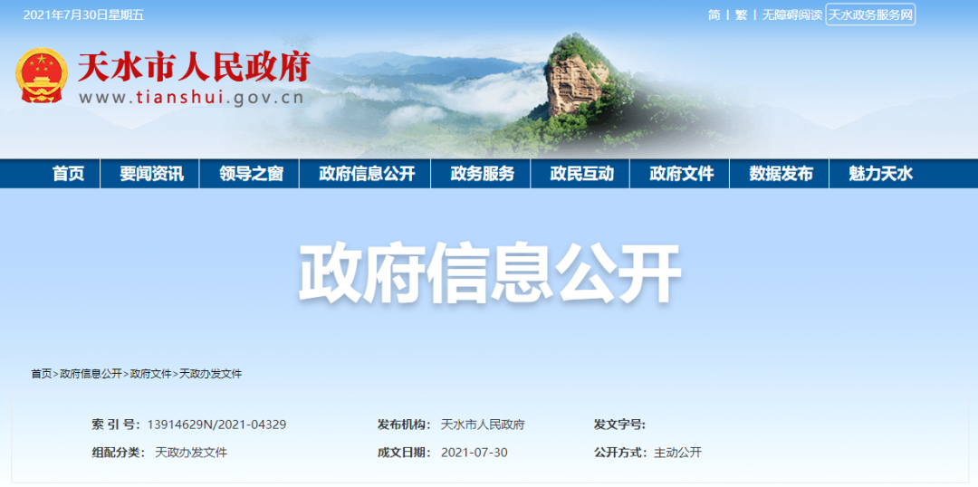 天水市人民政府办公室关于