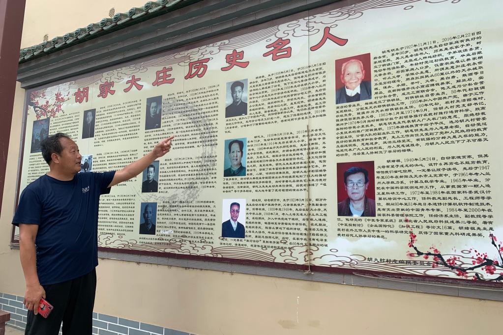 胡雲介绍胡家大庄村历史名人。新华社记者张玉洁摄