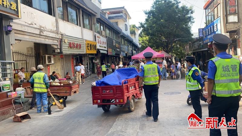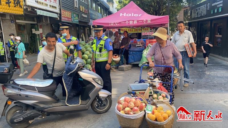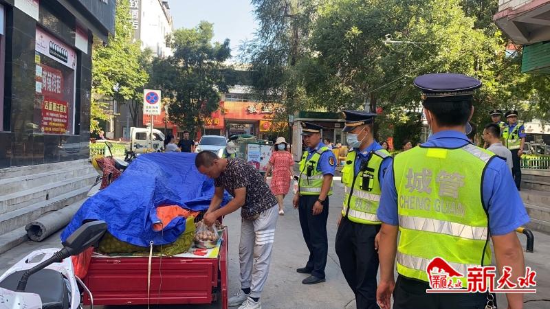 炎热夏季,大量应季水果上市,流动商贩大多在城区人口密集的街道小巷贩卖,这种行为不仅占用公共资源也影响市容环境。 8月2日上午,秦州区执法局西关中队组织15名工作人员,集中治理解放路育生巷口占道经营的摊位。