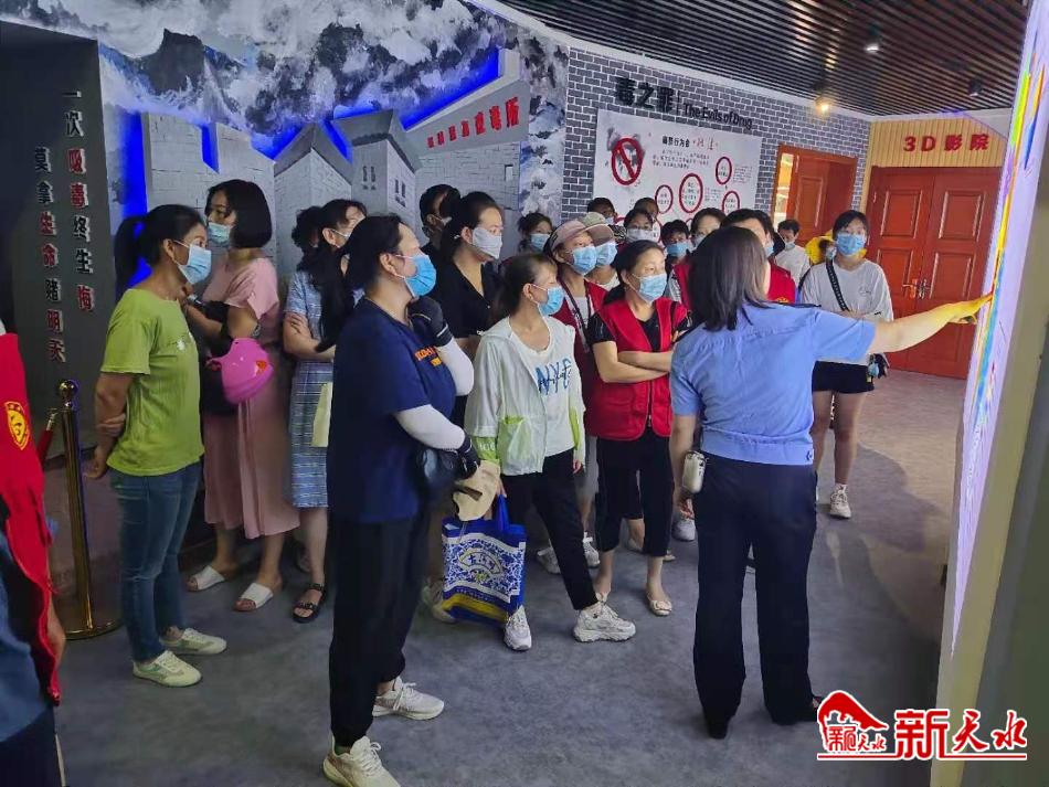 新天水讯 为进一步提高社区居民识毒、防毒、拒毒的意识和能力,天水郡街道瀛池社区组织辖区居民及学生参观禁毒教育基地。
