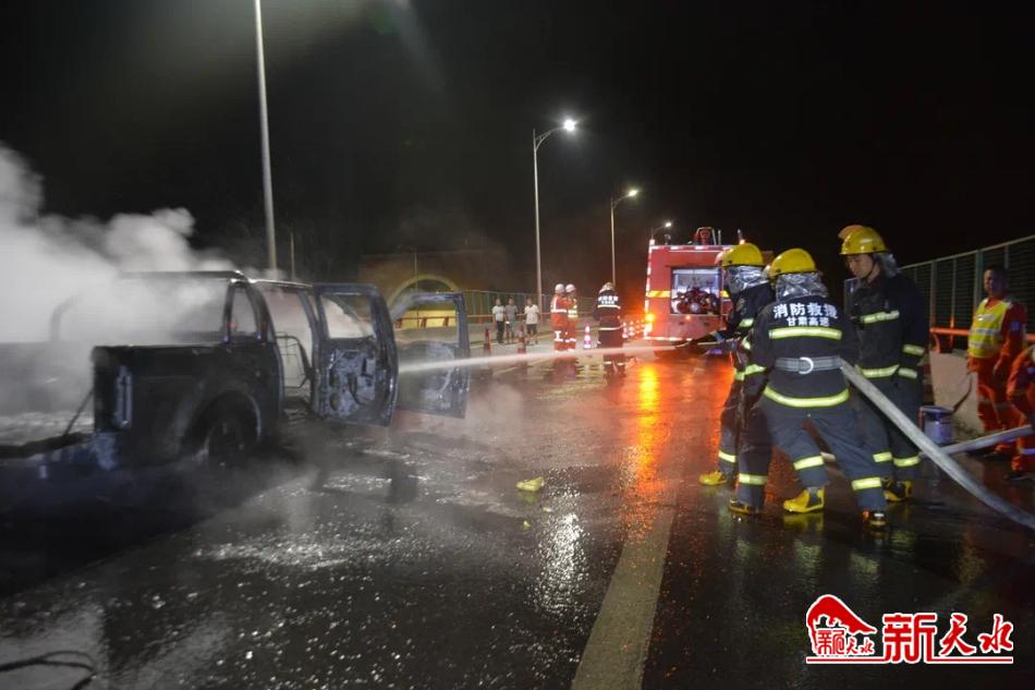 车辆高速自燃 天水救援人员迅速处置抢通道路
