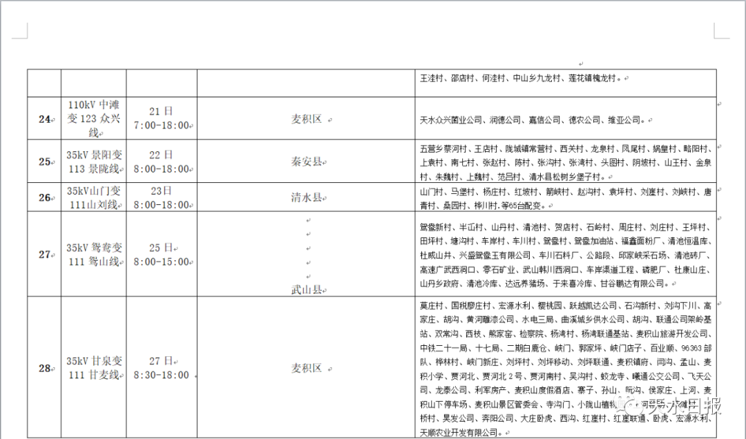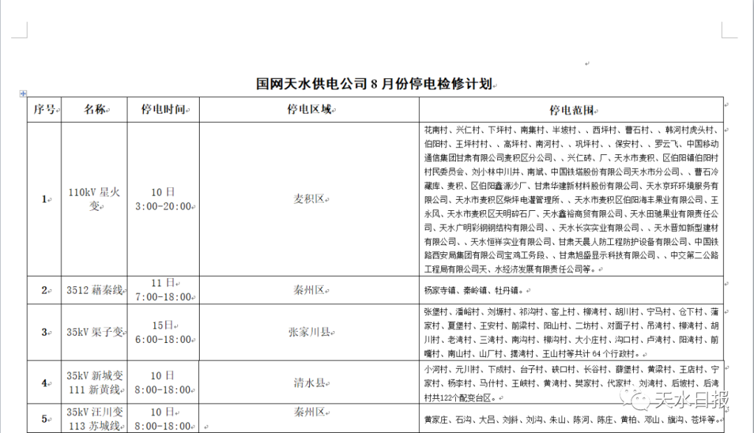 【便民条】提醒!8月份,天水这些地方停电