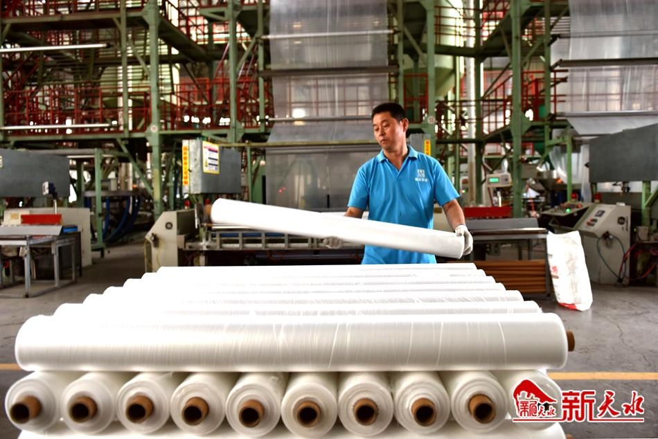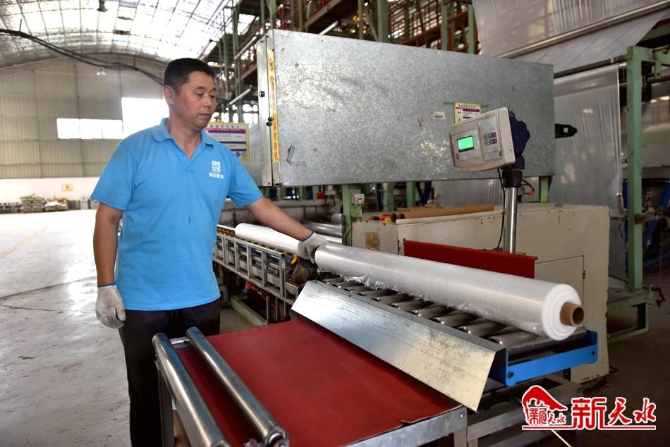 8月4日,甘肃福雨塑业有限责任公司工人正在生产。位于秦安县何川工业园区的甘肃福雨塑业有限责任公司是一家集农用地膜、棚膜、工业包装膜等塑料制品研发、生产、销售于一体的股份制高新技术企业,产品销往等全国28个省、自治区,深受客户好评。