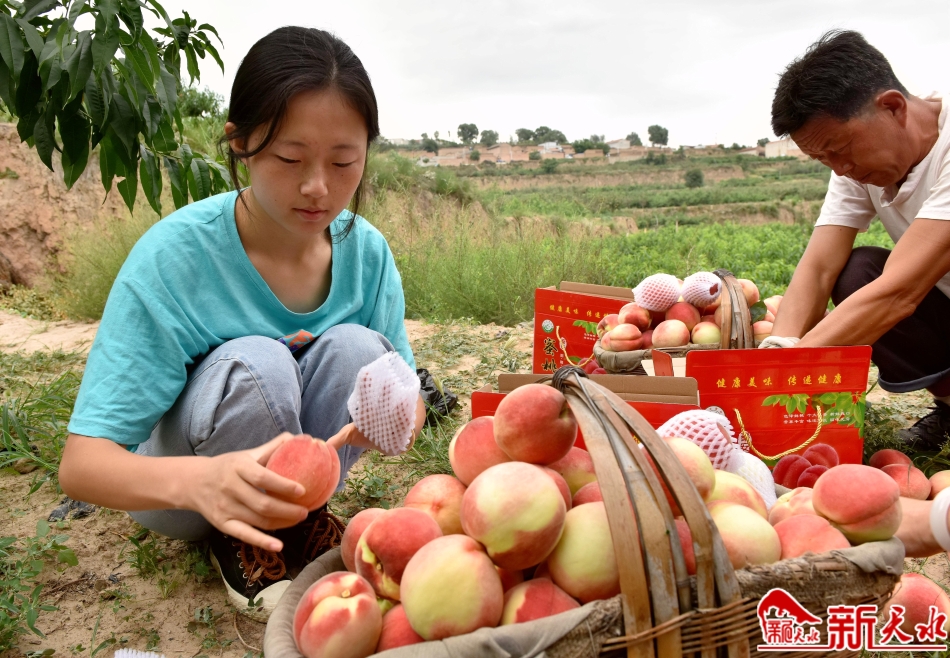 8月4日,秦安县刘坪镇秦洼村村民正在采摘蜜桃。近年来,秦安县立足县情,科学规划,按照因地制宜、突出特色、合理布局、深度开发、提高效益的原则,大力发展蜜桃产业,蜜桃种植面积达10.25万亩,畅销青海、宁夏、新疆、内蒙古等地,深受消费者青睐。