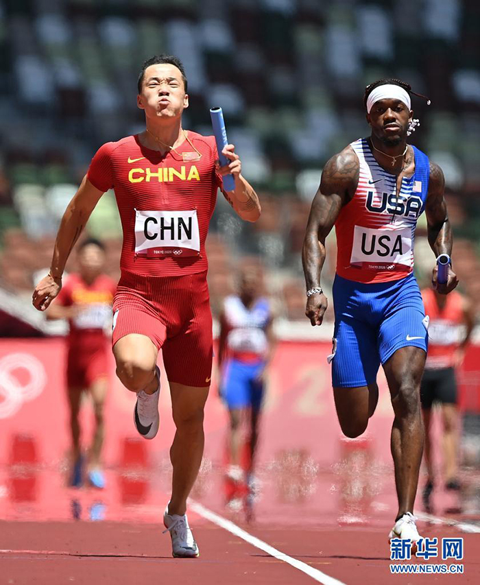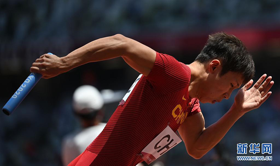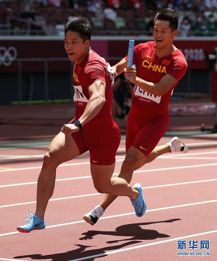8月5日,东京奥运会田径男子4x100米接力预赛在新国立竞技场举行,中国队晋级决赛。