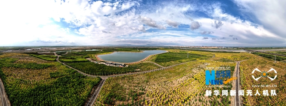 位于甘肃省张掖市黑河岸边的城市森林公园,曾是一片沙石滩。近年来,张掖市通过造林绿化、水系建设等手段,把这里变成了一座碧波荡漾、杉林叠翠的森林公园。新华网发(郑旺 摄)