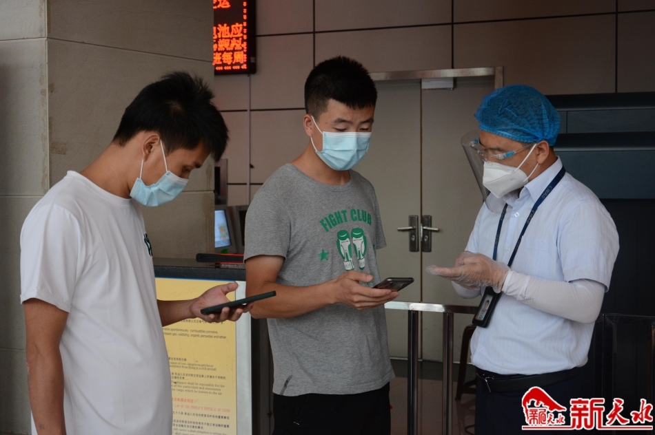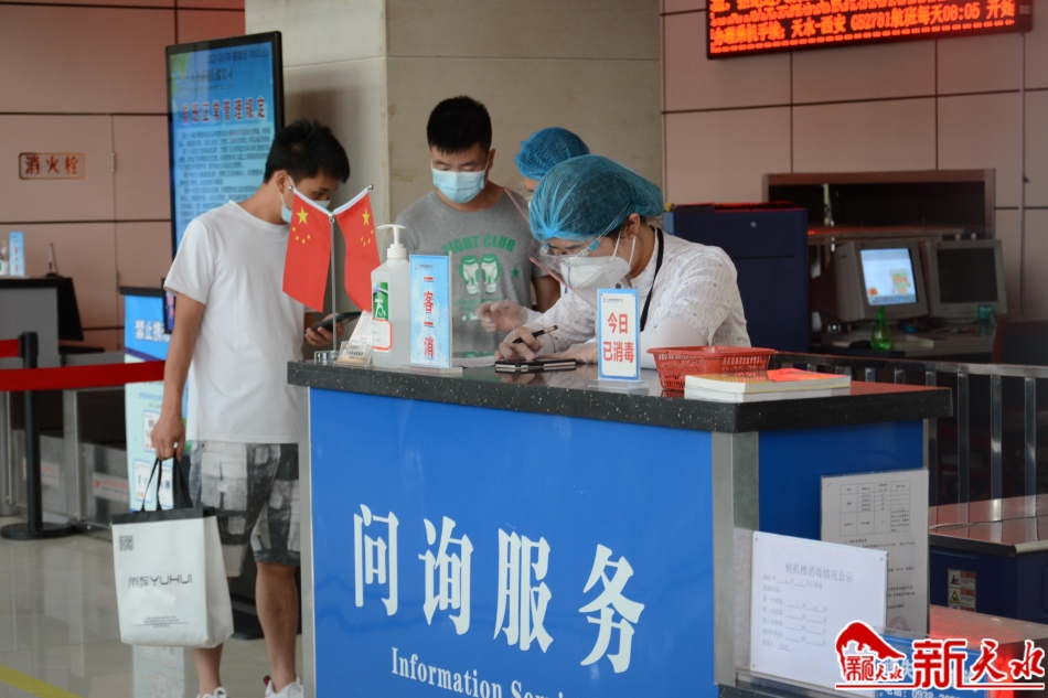 8月8日上午,在进站口,记者看到旅客需扫通信大数据行程卡,通过红外测温仪后,来到候机区。候机区广播里一遍接着一遍播放着疫情防控措施。