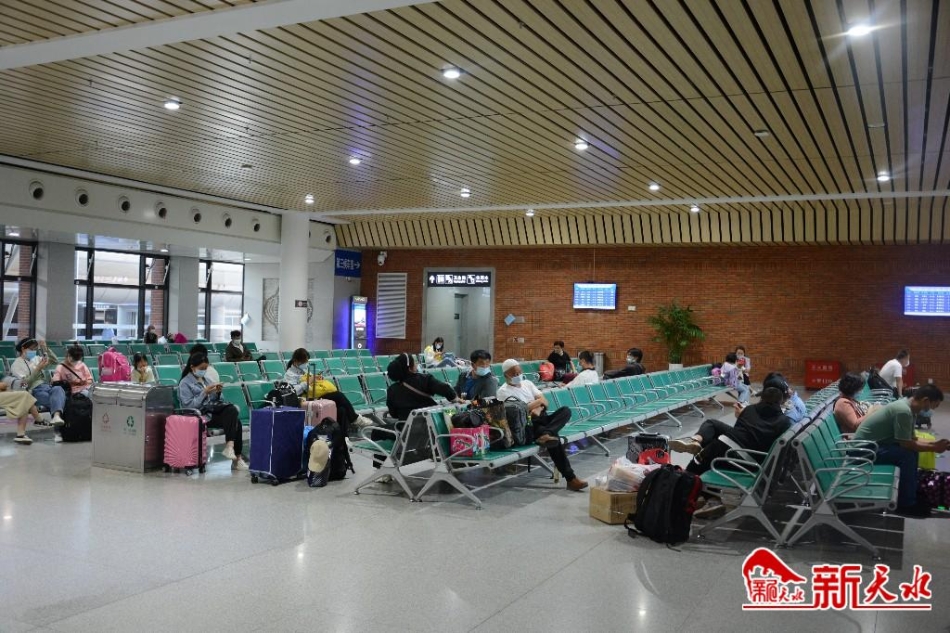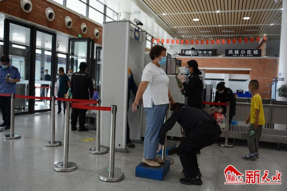旅客们戴着口罩,出示健康码,通过红外测温仪后,有序走进车站。