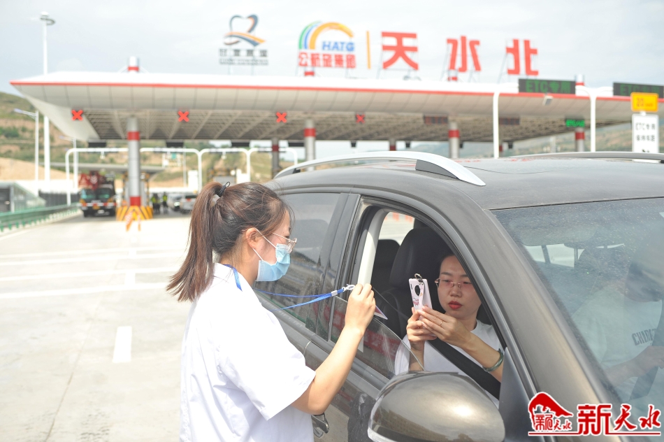 (工作人员在平凉至天水高速公路天水北出口核验来(返)天水人员的健康出行码)