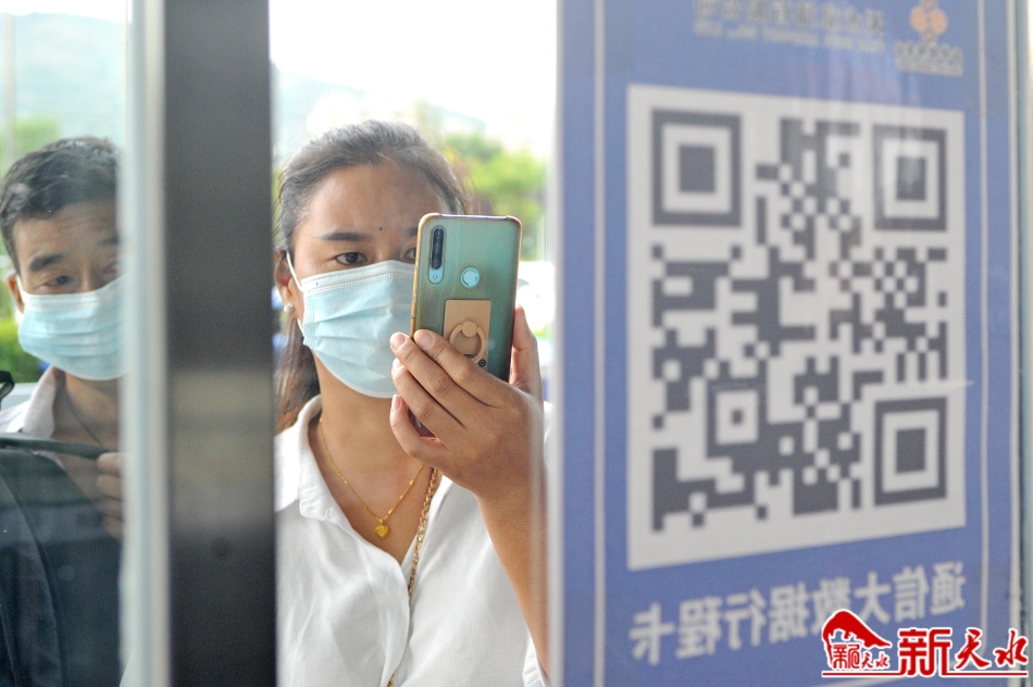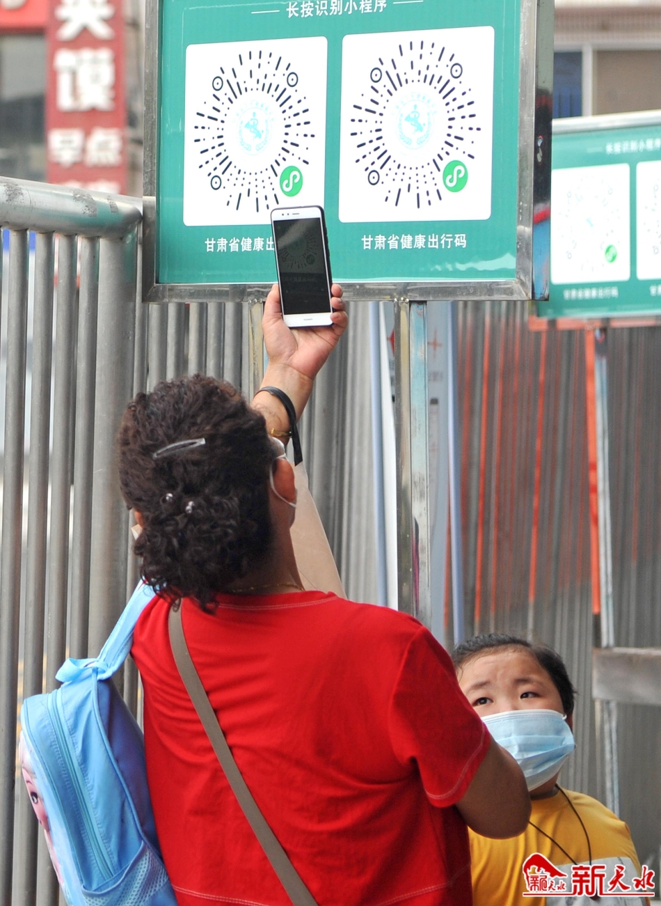 (旅客在天水机场外扫描提供通信大数据行程卡)