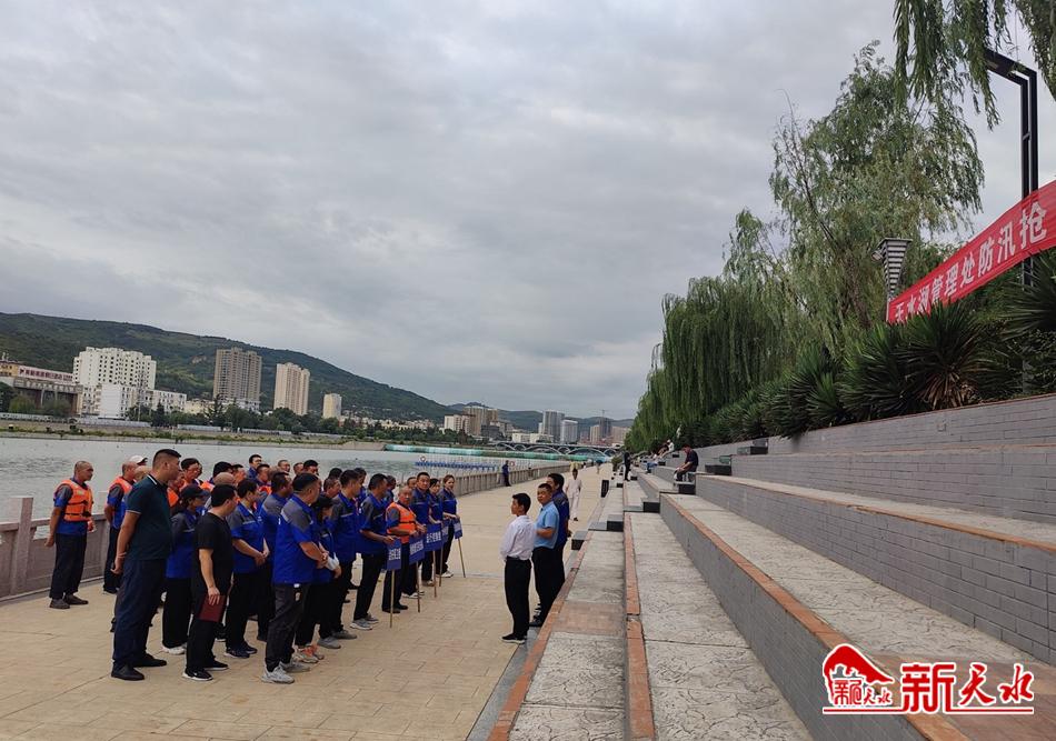 新天水讯【通讯员王琦】为进一步增强广大干部群众的防汛救灾意识,切实提高防汛抢险应变能力,全面提升水湖、藉河风情线防汛抢险救援水平和应对突发事件的能力。近日,秦州区城乡环卫治理中心组织天水湖管理处、藉河风情线防汛工作人员在天水湖进行防汛抢险应急演练。