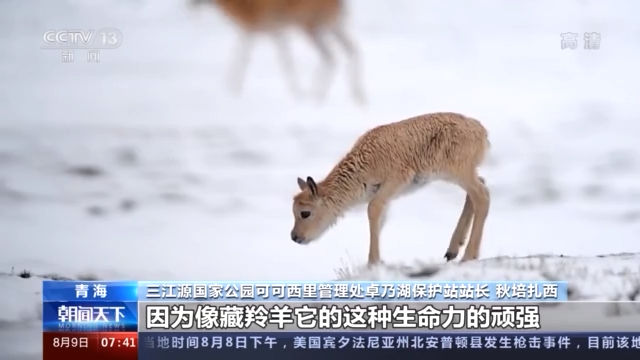 记者 邵海成:我现在所在的地方是三江源国家公园可可西西五道梁保护站,这里的海拔有4600多米,在我身后不远处母藏羚羊正带领出生不久的小藏羚羊,返回栖息地曲麻河地区。