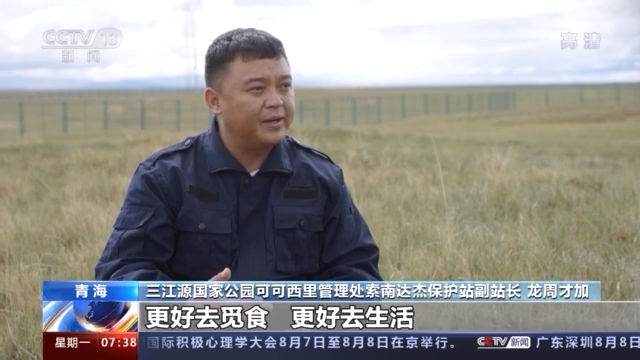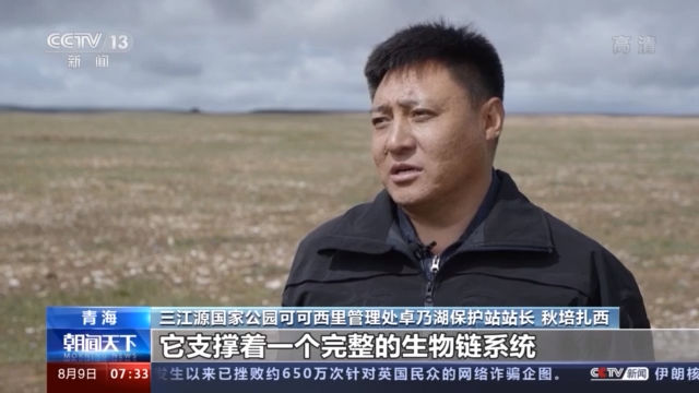 三江源国家公园可可西里管理处卓乃湖保护站站长 秋培扎西:像藏羚羊它生命力的顽强,作为一个旗舰物种,作为一个基础物种,支撑起青藏高原的生态平衡,也是值得我们去守护、去保护的。(记者 邵海成 格尔木台)