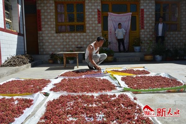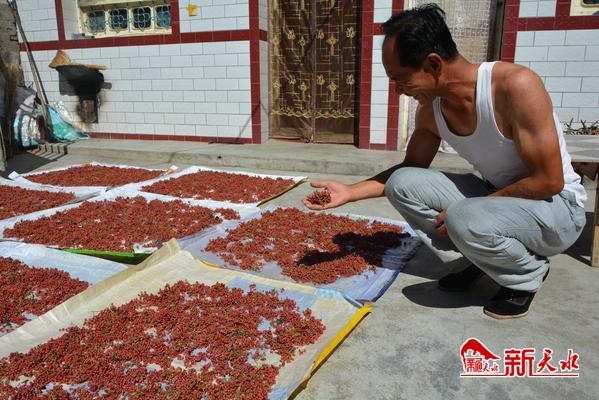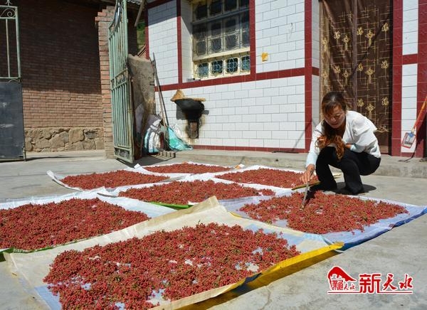 8月6日,清水县白沙镇代沟村村民正在院子里晾晒花椒。近年来,代沟村大力发展花椒、核桃、半夏种植产业,目前全村花椒种植面积有260多亩,每斤40—50元的销售价格让花椒成为了村民脱贫致富的“摇钱树”。