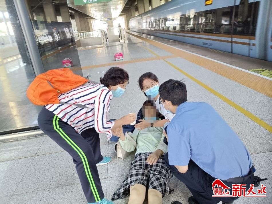 张国麟赶紧从即将启动的列车上接了一杯水,又把自己随身携带的水连忙给该女子喝了。想到女子可能是低血糖,张国麟的妻子向站台上其他旅客寻找糖果后连忙让女子含到嘴里,并鼓励她坚持住。