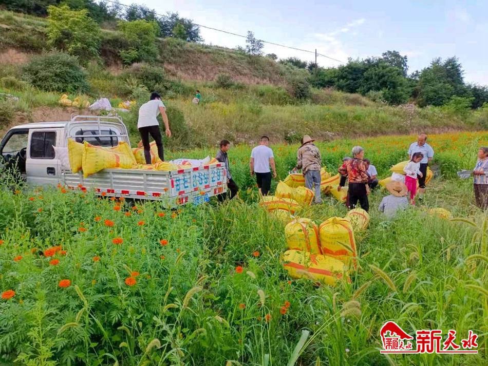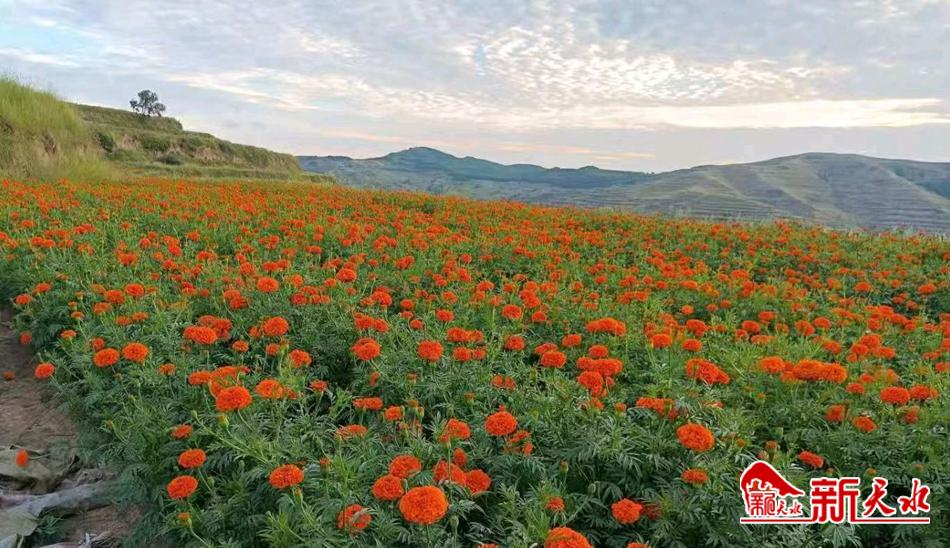 乡村要振兴,产业是关键。今年以来,清水县红堡镇新坪村采取“龙头企业+合作社+农户”的模式,充分发挥地理优势,因地制宜优化产业结构,大力发展万寿菊产业,不仅扮靓了村庄,更拓宽了群众增收致富渠道,促进乡村振兴。 盛夏时节,万寿菊陆续绽放,进入忙碌的采摘期,迎来了“流金”时刻。