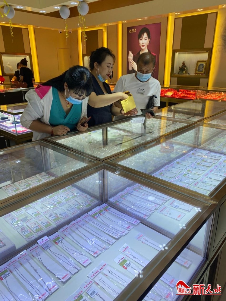 据市百货大楼黄金柜台的店员齐小艳介绍,为拉动消费,七夕节当天黄金首饰全部7.7折,千足黄金价格每克为408元和398元,打折促销价格仅此一天,因为此次优惠力度大,吸引了不少消费者,当天黄金的成交额同比增长130%左右。
