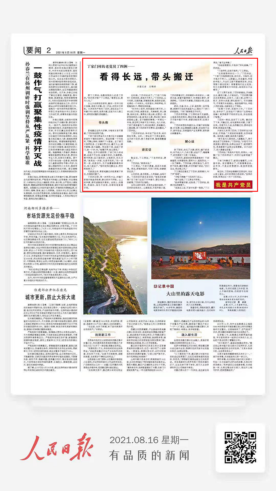 人民日报|丁家门村的老党员丁四洲——看得长远,带头搬迁