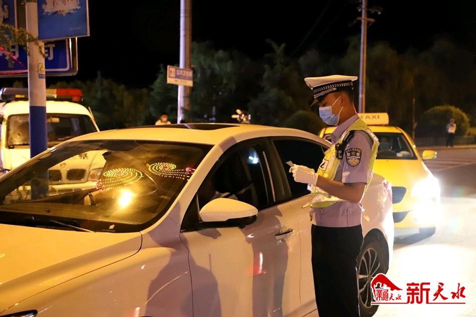 新天水讯【 特约通讯员 王玉芳 韦亚倩】8月13日晚,清水县公安局交警大队在城区交通要道开展酒驾、醉驾专项整治行动,严厉打击酒驾醉驾等严重道路交通违法行为,全面净化辖区道路交通通行秩序。